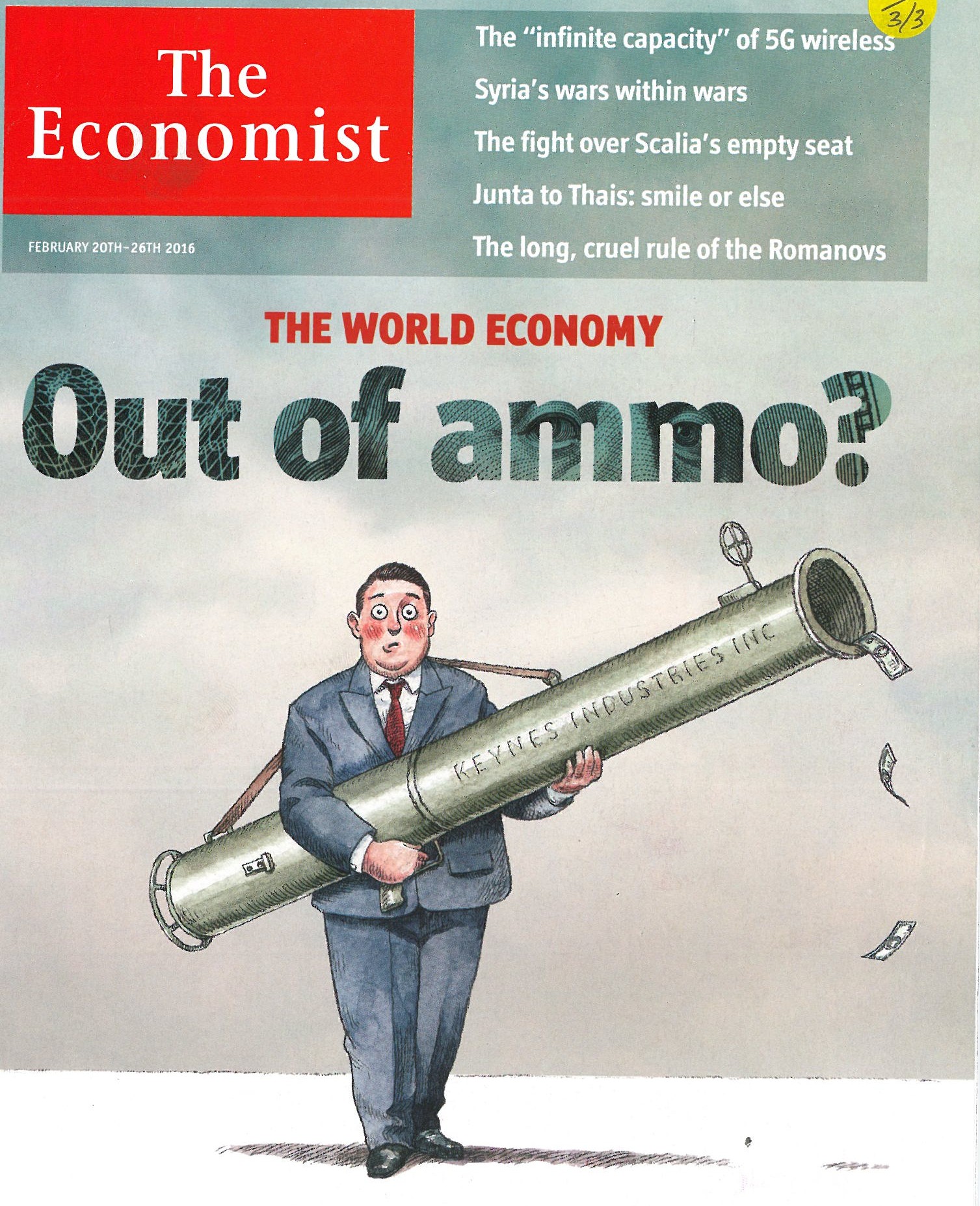 Bankruptcy of Keynesianism - a cartoon from the front cover of the Economist FEb 2016